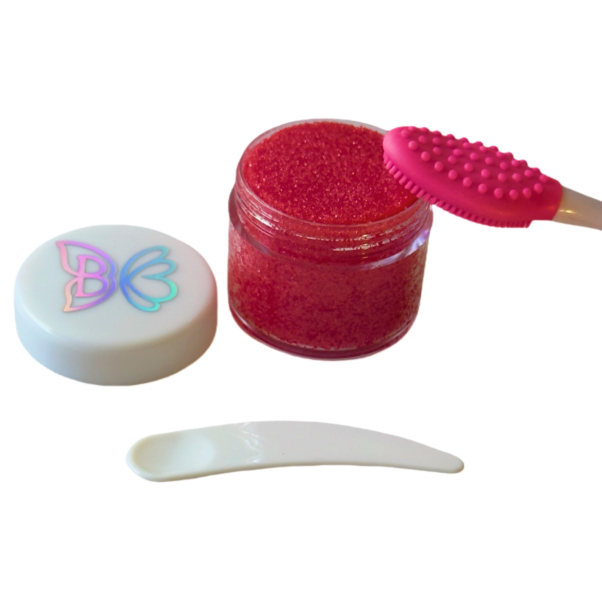 Cherry Bomb is a juicy cherry lip scrub that exfoliates away dead skin for a fresh, baby-soft lip feel before gloss or balm.