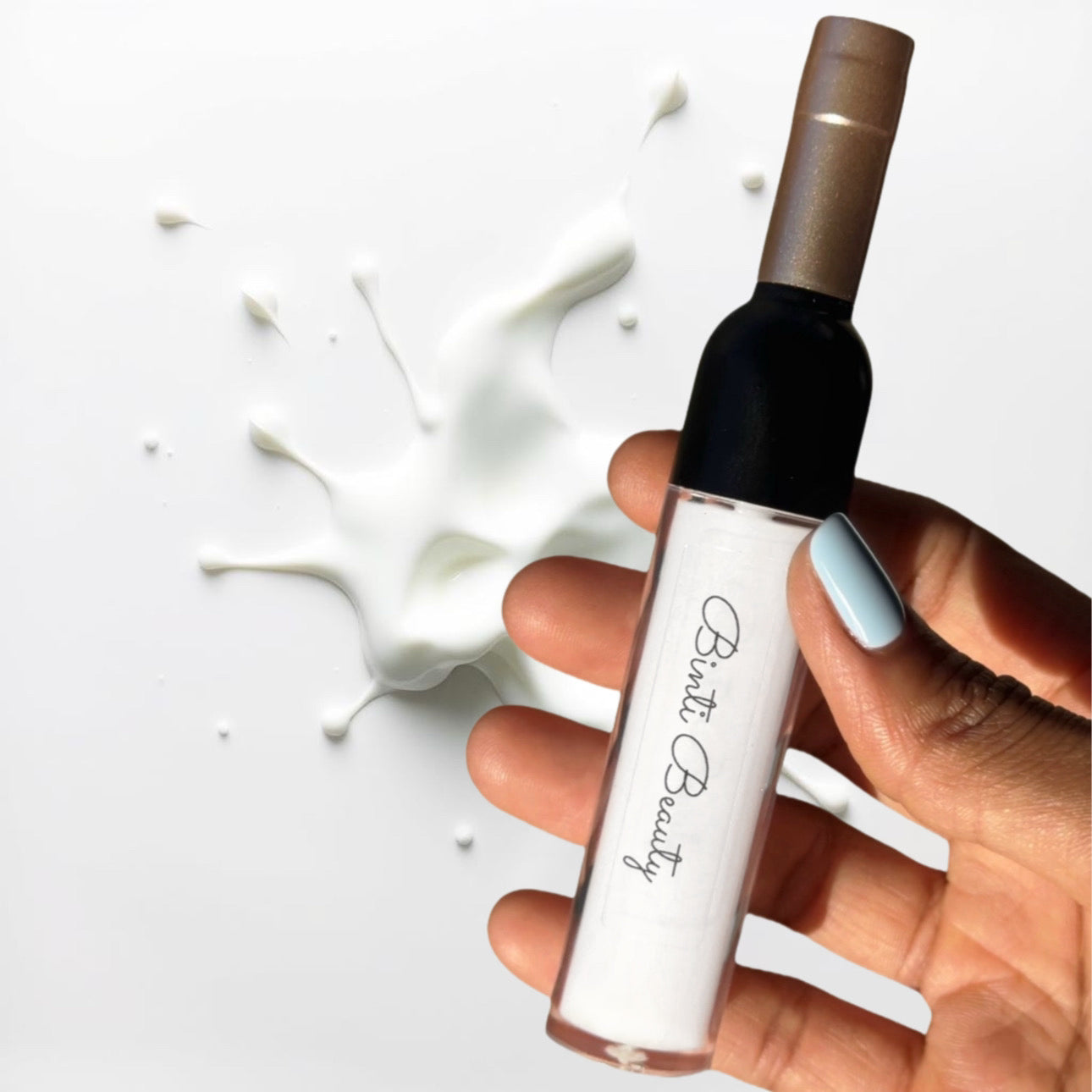 A milky white gloss with a strawberry milk scent that leaves your lips glossy, soft, and deeply hydrated.